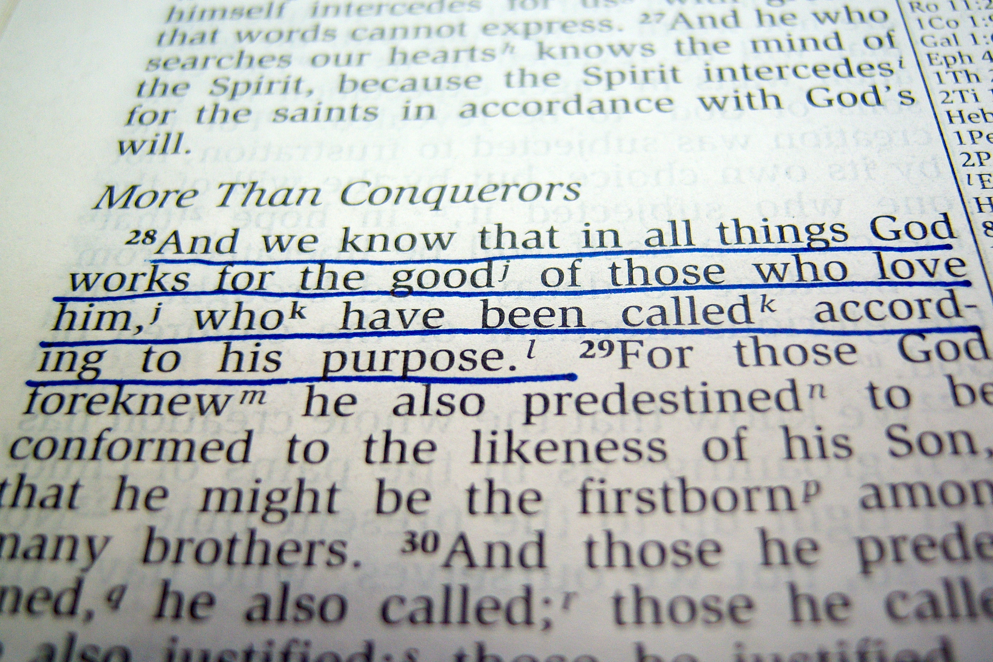 Key Verses: Romans 8:28, 31, 35, 38-39 “And we know that in all things God works for the good of those who love him, who have been called according to his purpose…What, then, shall we say in response to this? If God is for us, who can be against us? …Who shall separate us from the love of Christ? Shall trouble or hardship or persecution or famine or nakedness or danger or sword? …For I am convinced that neither death nor life, neither angels nor demons, neither the present nor the future, nor any powers, neither height nor depth, nor anything else in all creation, will be able to separate us from the love of God that is in Christ Jesus our Lord.”