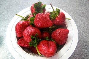 I very rarely buy strawberries here in Okinawa. Unfortunately, they are just too expensive. For the price I generally pay here; I would guess that I could get two to three times as many strawberries in the states. Yesterday, I noticed that they were a lot cheaper than they normally are. So, I bought a pound of them!