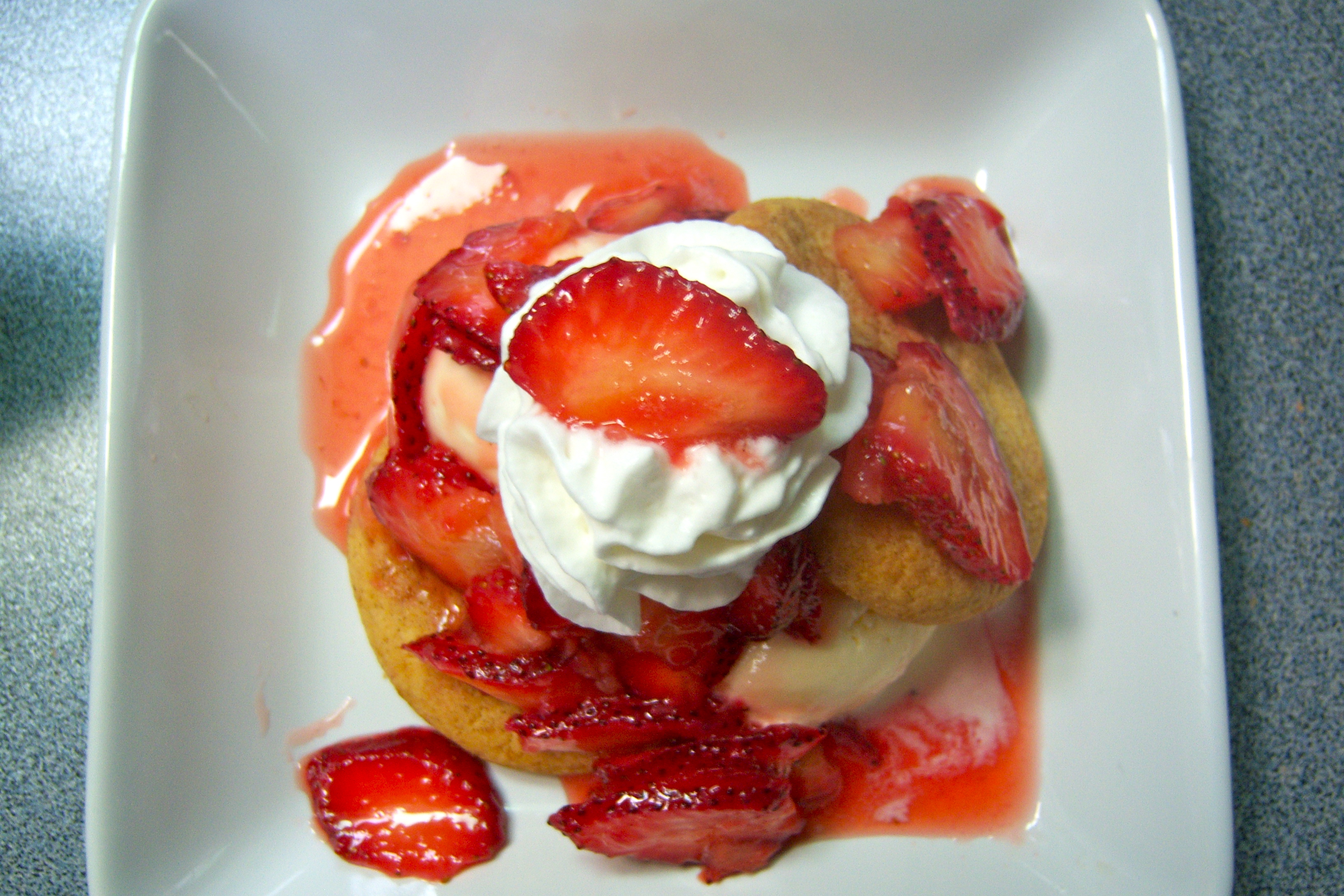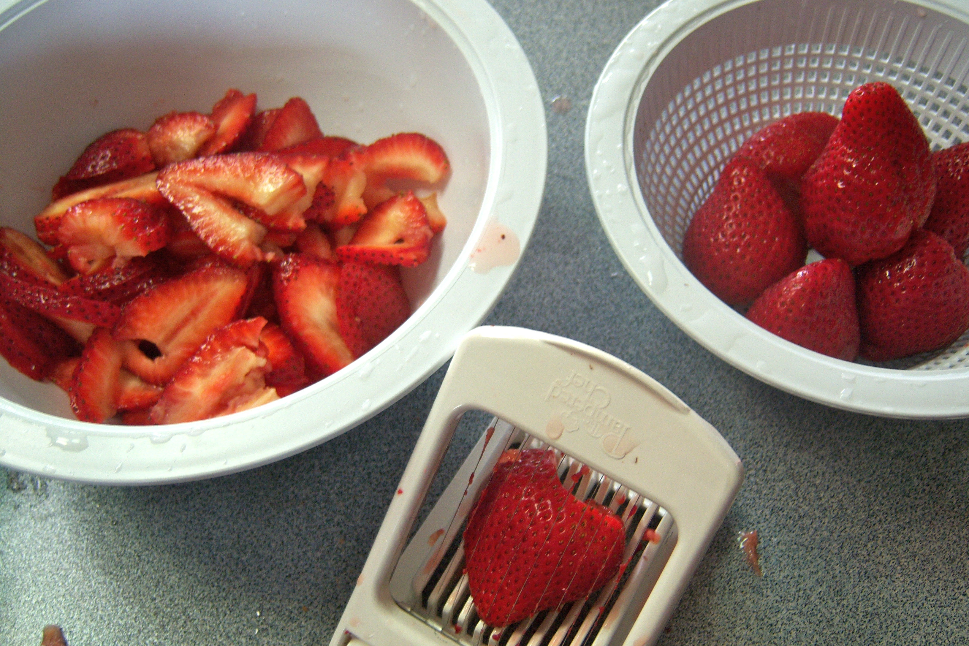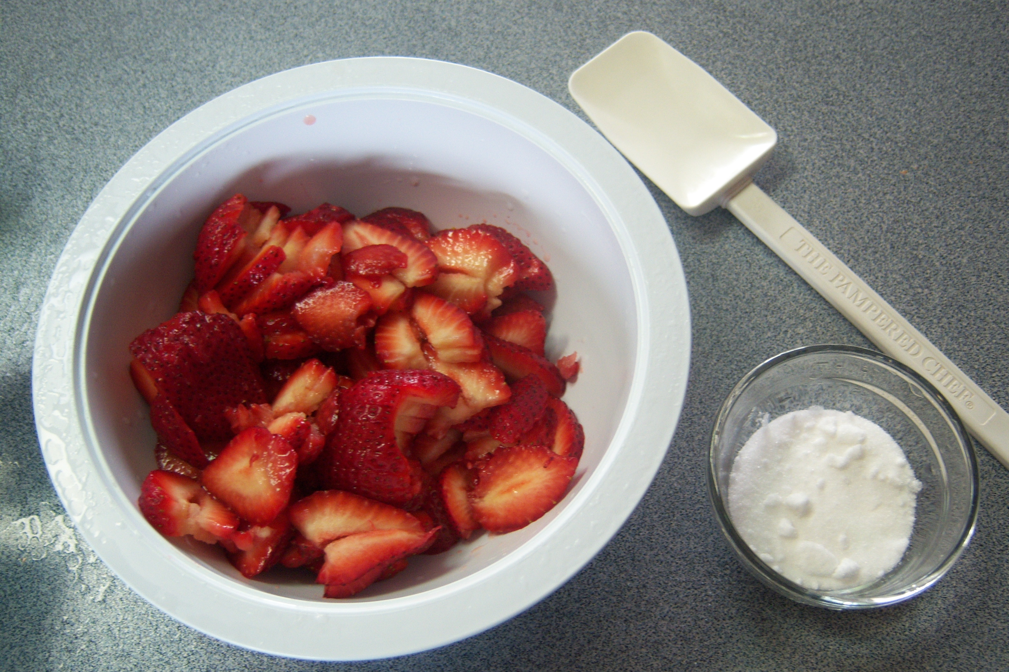 I like to eat sugared strawberries over angel food cake but this time I tried something a little different. Here are step by step directions for preparing a easy and yummy dessert!