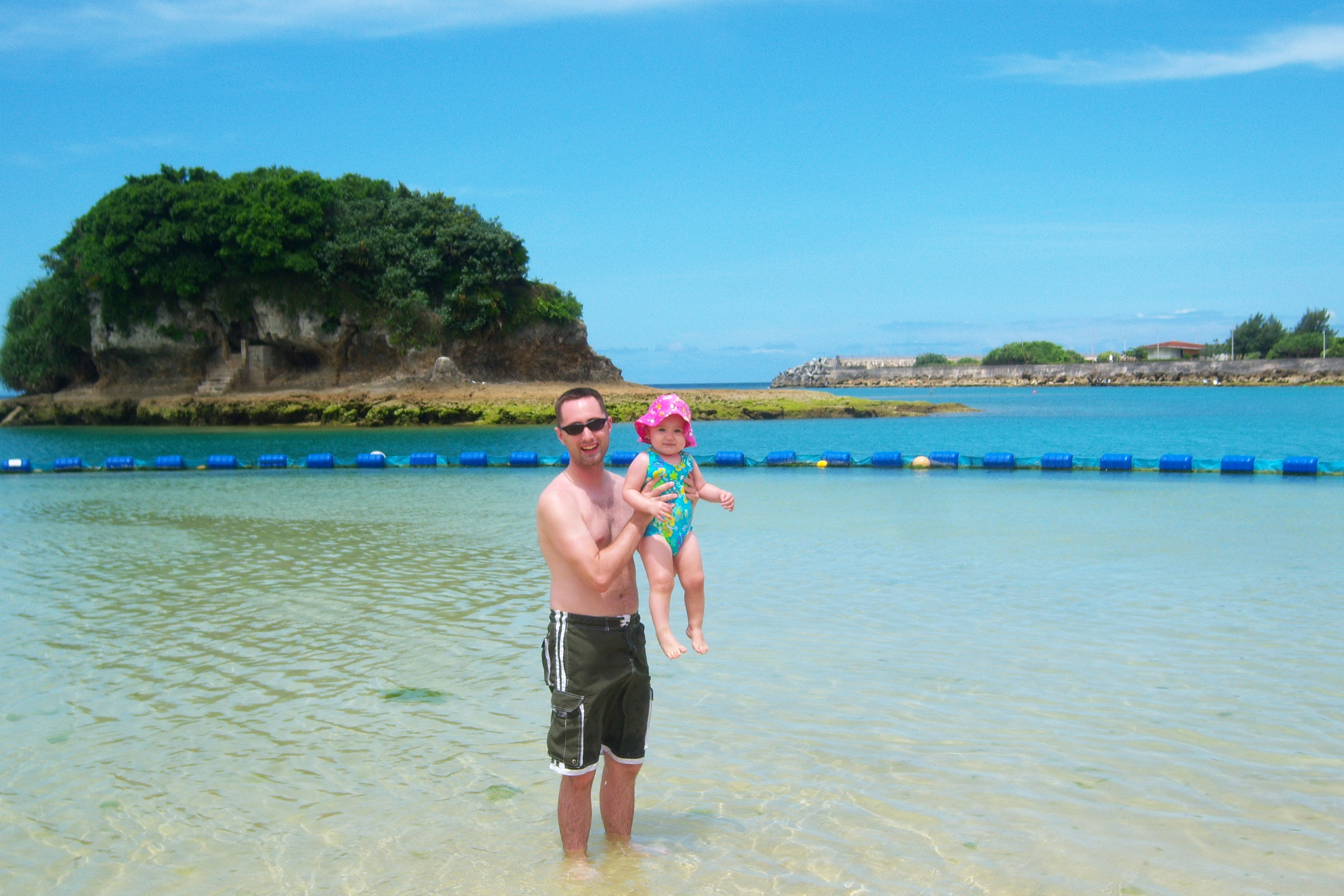The tide was out so the water level was perfect for the girls. Kendal made some new friends (like she does everywhere we go). Audrey loves water and had no problem putting her head underwater. I sat on the beach and read a book most of the time we were there (I still think the water is too cold). I absolutely love our beaches here in Okinawa. The view is beautiful.