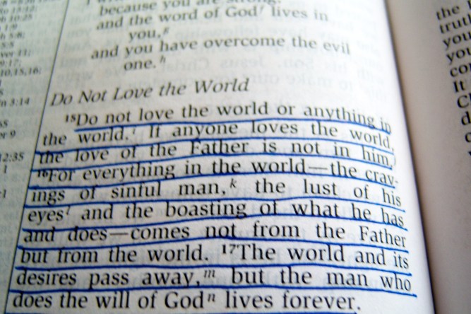 Key Verses: 1 John 2:15-17 “Do not love the world or anything in the world. If anyone loves the world, the love of the Father is not in him. For everything in the world—the cravings of sinful man, the lust of his eyes and the boasting of what he has and does—comes not from the Father but from the world. The world and its desires pass away, but the man who does the will of God lives forever.”