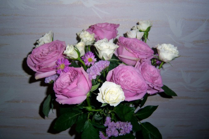 Shane got pink and purple flowers because those are the girls favorite colors.