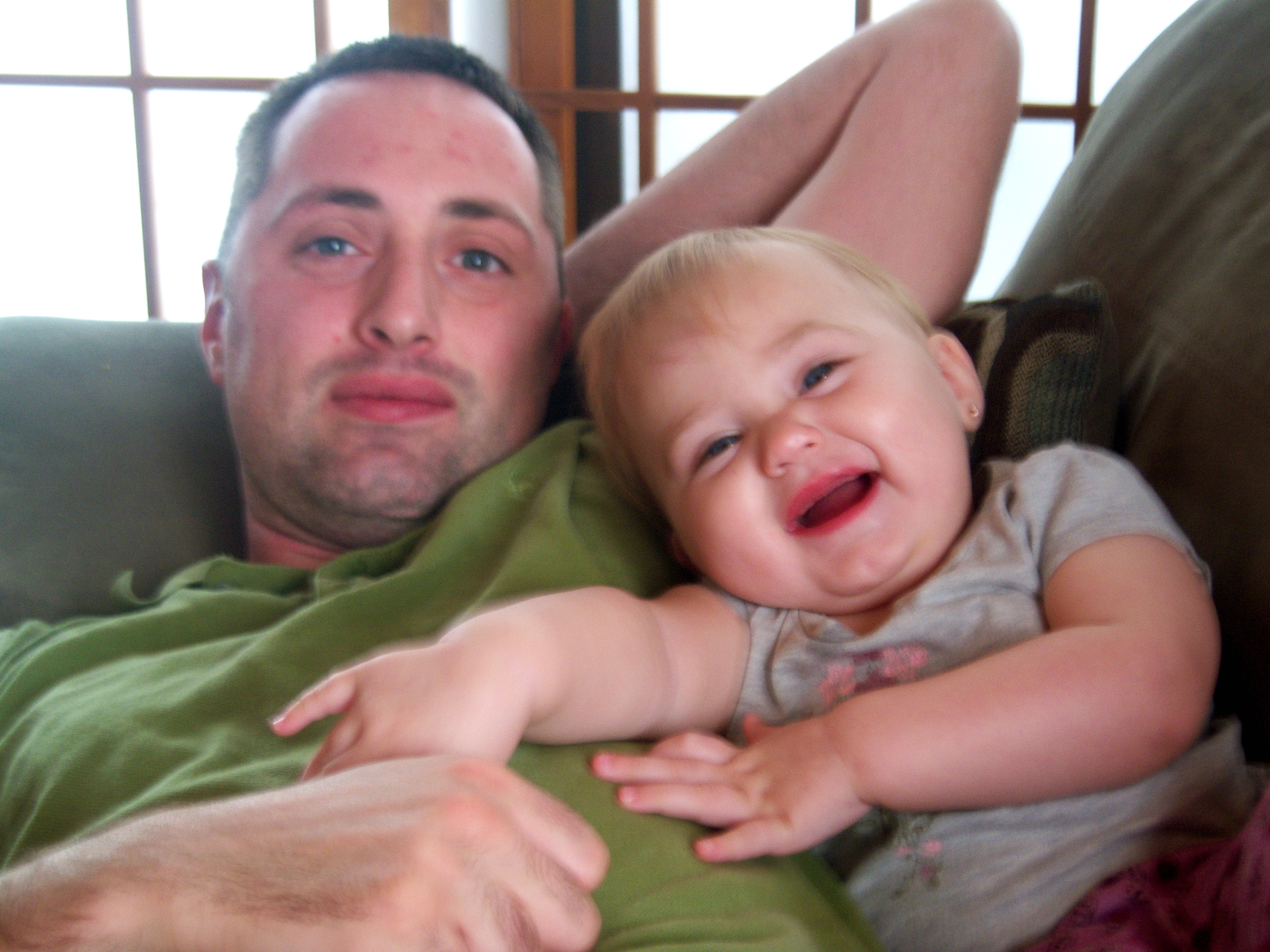 This was taken several months ago before Audrey had teeth. Shane kept surprising her with tickles so she was bracing herself.