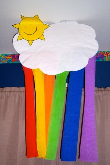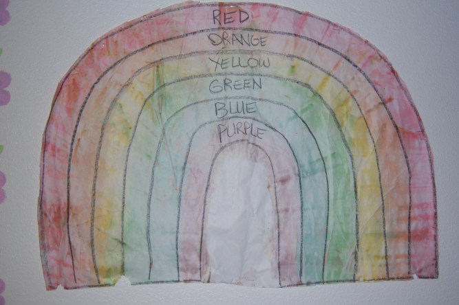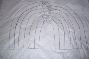 1. I drew the outline of a rainbow on butcher paper (left over paper from unpacking our shipment).