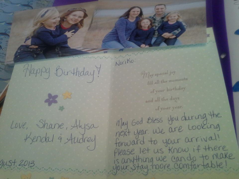03Noriko’s will celebrate her 17th birthday this month before she arrives to the US. So I included a birthday card with a short message and a couple of family photos.