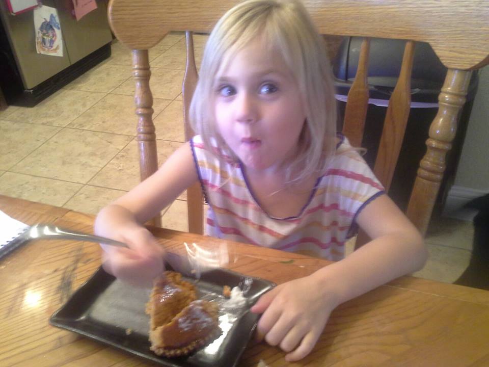 Other things I have made her try include: pumpkin cake, homemade tapioca pudding, potato soup, homemade jam (of different flavors), sour patch kids, Big Mac, and much more. She likes most things that I have given her (or at least she says she does 🙂 ). She loves to eat!