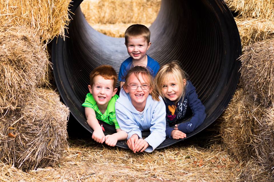 We went to Davis Farms here in Clovis, New Mexico with some friends on a crisp and windy autumn day. They had a hay bale maze for little kids. A hay bale mountain to climb on with a tunnel going through it. A large corn maze. A hay ride to the pumpkin patch where we picked our own pumpkins. There were not many people at the farm and it was nice to do everything at our own pace. We spent a few hours there and then went to IHOP for dinner and hot chocolate to warm us up! My friend Stephanie took most of the photos (I love the one with the kids in the tunnel)! And yes, this is counting as a field trip/school day for my girls! 🙂