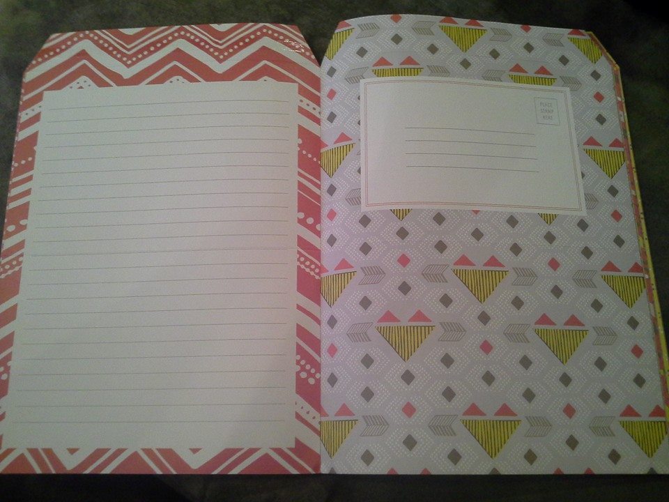 I absolutely love the idea of the letter and envelope in one page. It is a neat concept for stationary. There is nothing on the pages that distinguishes them as love letters so they can be used for any type of letters that you want to write. However, I was very disappointed with the colors and patterns used on the pages. The three main colors choices are salmon, yellow and grey. The designs in my opinion are ugly. I honestly do not know why these colors and designs were chosen for “love letter” stationary. I hope that more of these books are created but with much better color choices and designs to choose from.